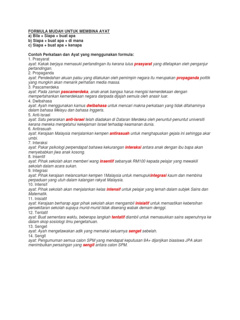 Formula Mudah Untuk Membina Ayat Pdf